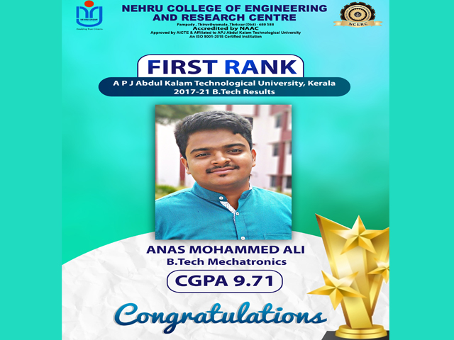 CONGRATULATION TO MR.ANAS MOHAMMED ALI FOR HOLDING FIRST RANK (2017-21)BATCH