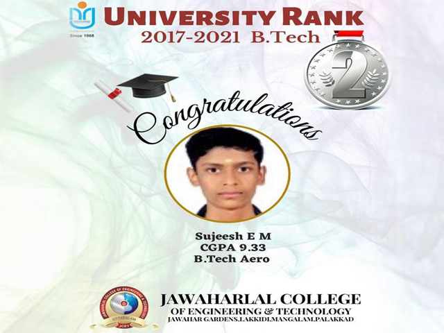 CONGRATULATION TO MR.SUJEESH E M FOR HOLDING 2ND RANK IN UNIVERSITY