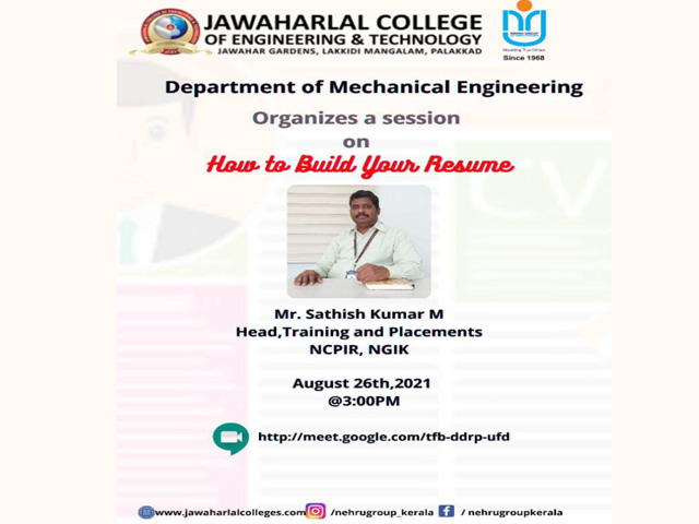 Webinar on ” How to Build your Resume”# dept. of Mechanical Engineering